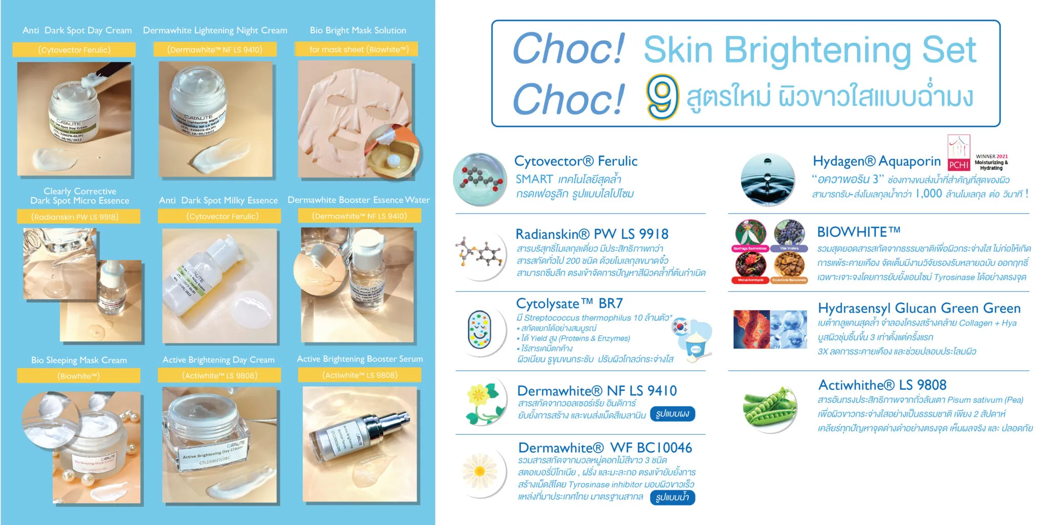 Choc! Choc! Brightening Skin Set ดูแลผิวให้ขาวใสฉ่ำมง ไม่ใช่แค่ขาวกระจ่างใส แต่ผิวต้องดูดีขึ้นในทุกมิติ ไม่ว่าจะเรียบเนียน แข็งแรง ละเอียดฟูอิ่มน้ำ ลุคฉ่ำๆหน้าเนียนๆ เหมือนหลุดออกมาจากซีรีย์เกาหลีเลยแหละทุกคน