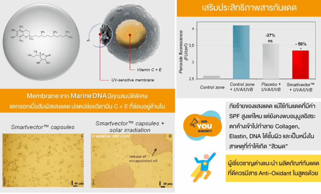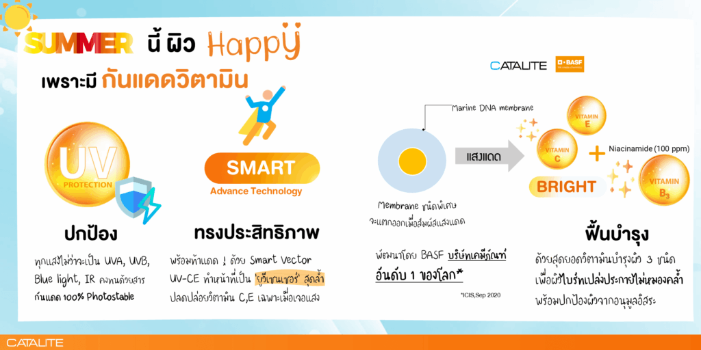 เราขอแนะนำนวัตกรรม Smartvector™ จาก BASF ระบบนำส่งสารสำคัญอัจฉริยะ (Encapsulation Technology) ที่ทำงานเหมือนมี ‘UV Sensor’ อยู่บนผิว