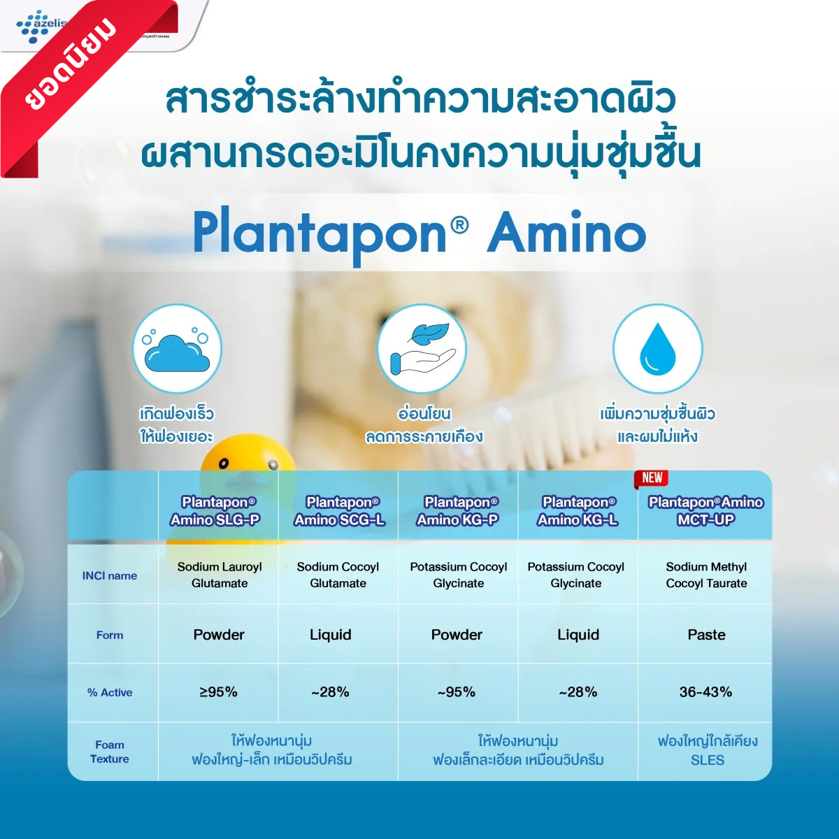 สารชำระล้างผสานกรดอะมิโนที่คงความชุ่มชื้นอ่อนโยนต่อผิว